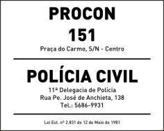 Placa Procon,placa polícia civil, placa lei estadual 2831 de 12/05/81, Tamanho 25x20 cm. Confeccionada em PVC 2 mm com adesivo impresso, acompanha fita dupla face.